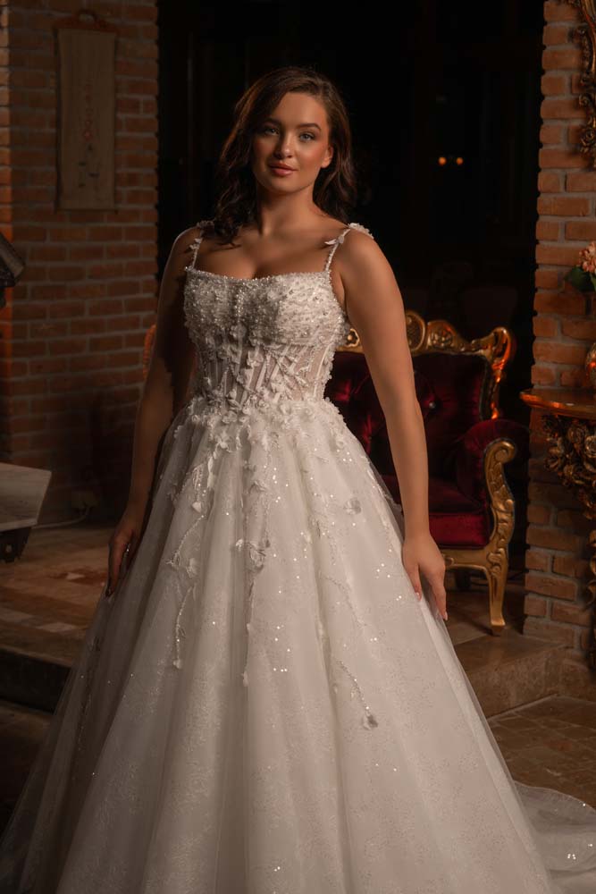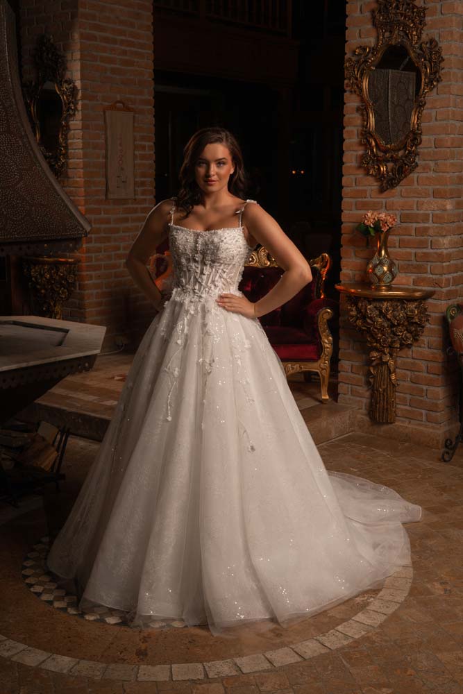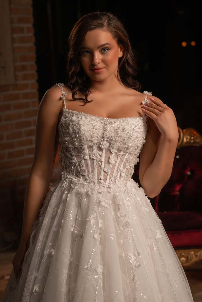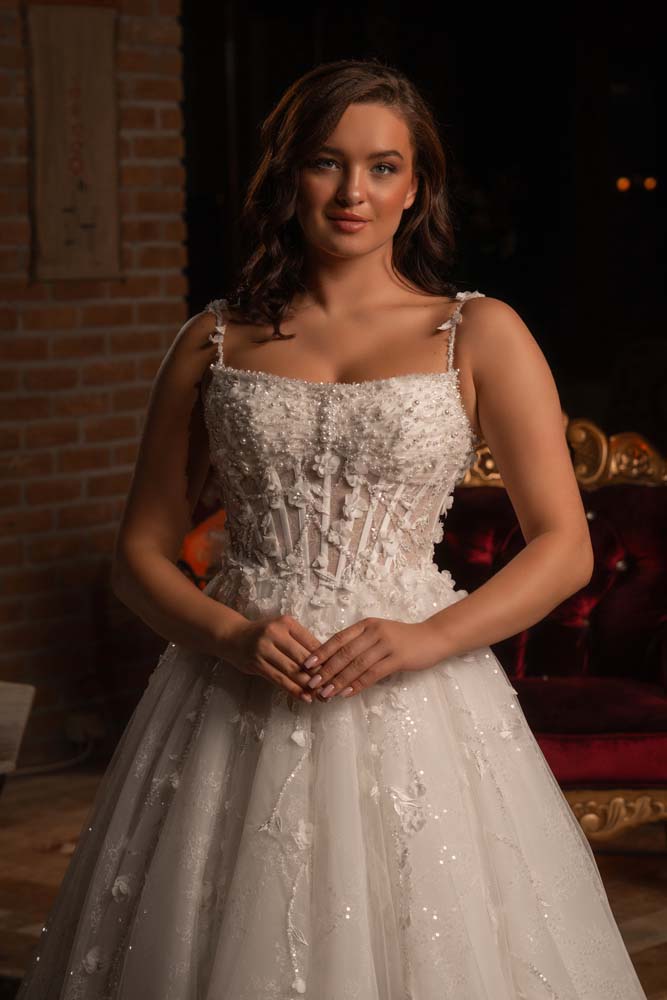 Fransız Havuz Yaka Üç Boyutlu Akıtmalı Helen Model Gelinlik