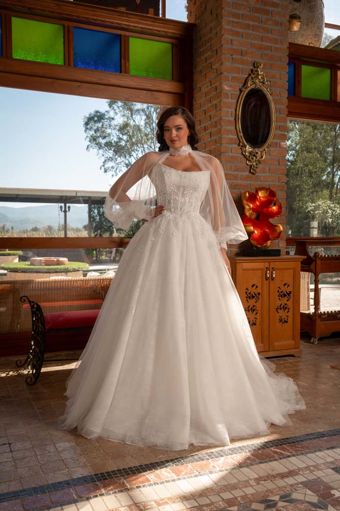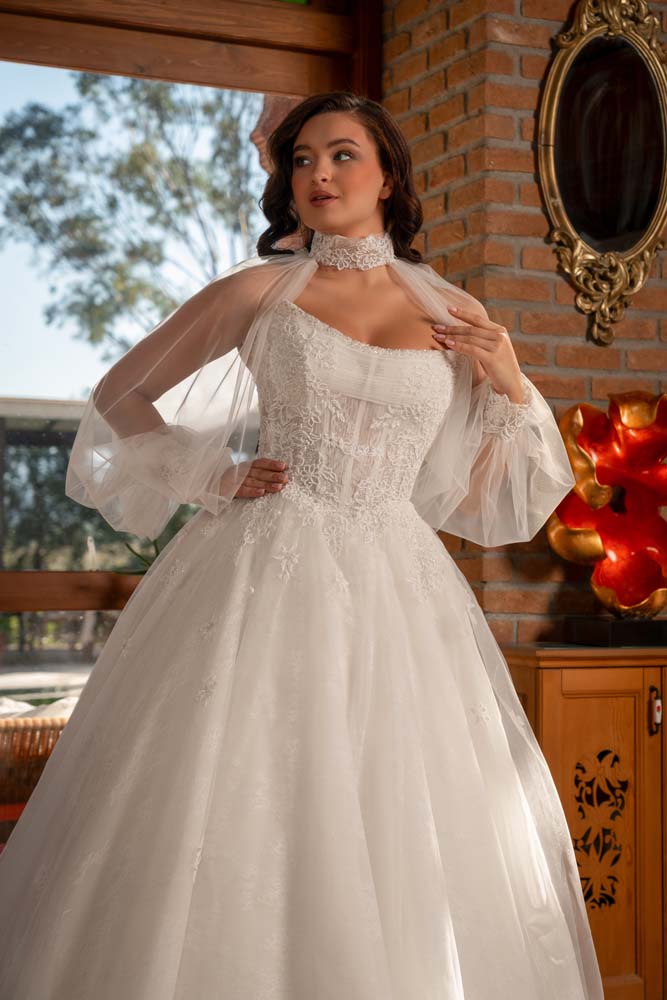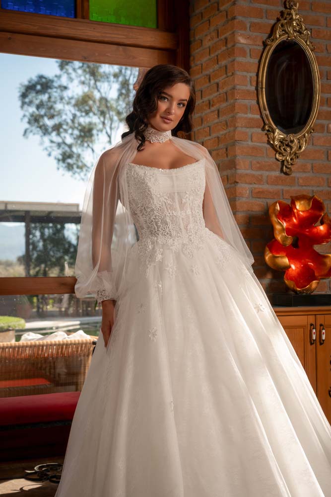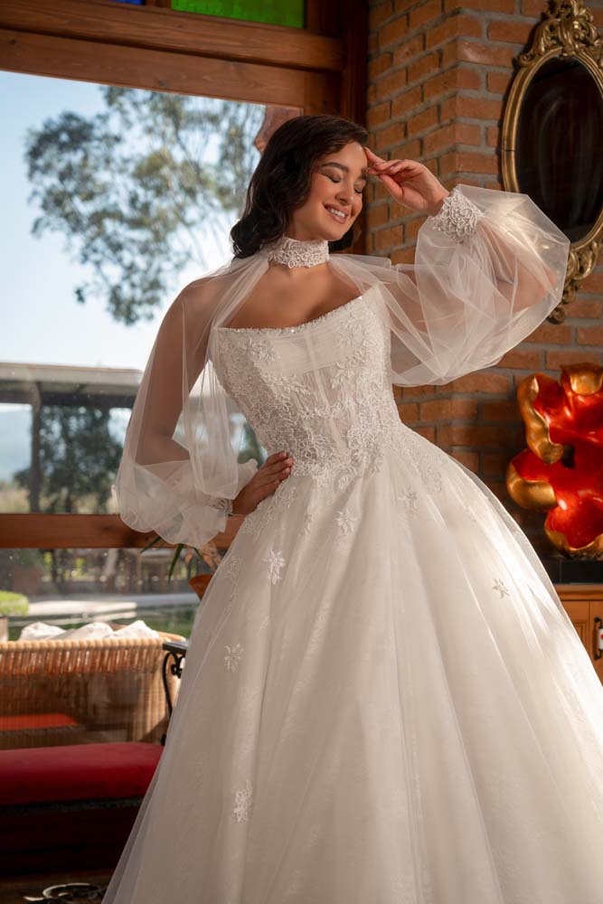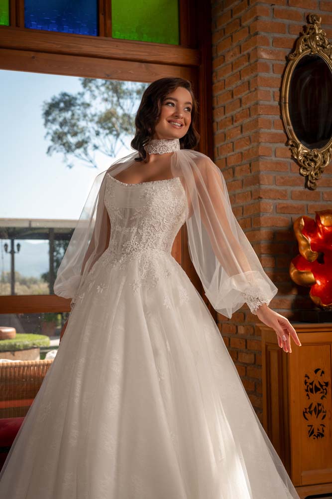 Havuz Yaka Balon Tül Kol Detaylı Helen Model Gelinlik