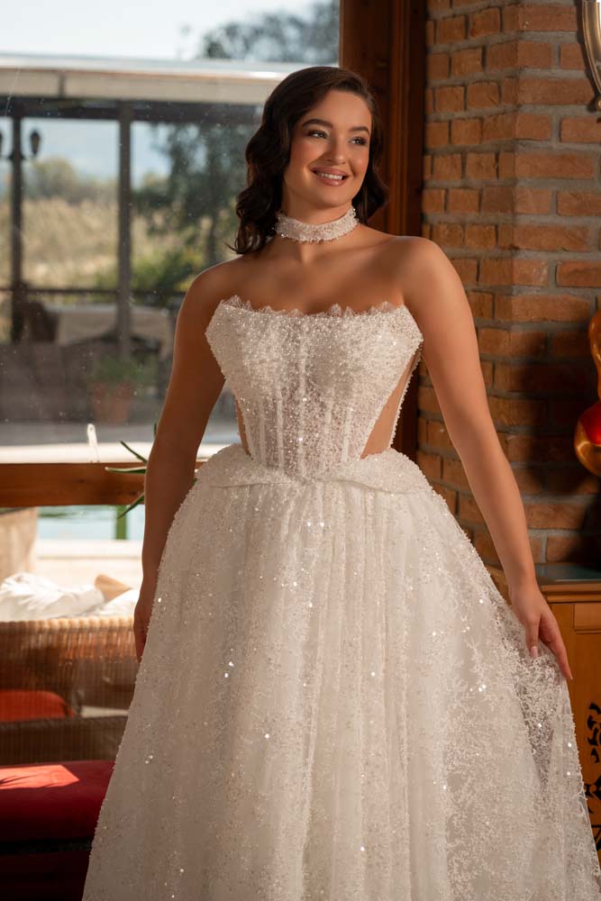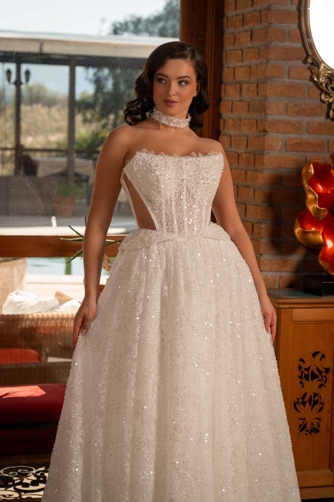 Havuz Yaka Beden Dekolteli Taş işlemeli Helen Model Gelinlik